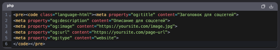 Правильная OG-разметка гарантирует, что ваша ссылка будет выглядеть аккуратно и привлекательно в любом мессенджере, что увеличит количество переходов из социальных каналов. Убедитесь, что изображение для og:image имеет размер не менее 1200x630 пикселей и весит не более 5 МБ.