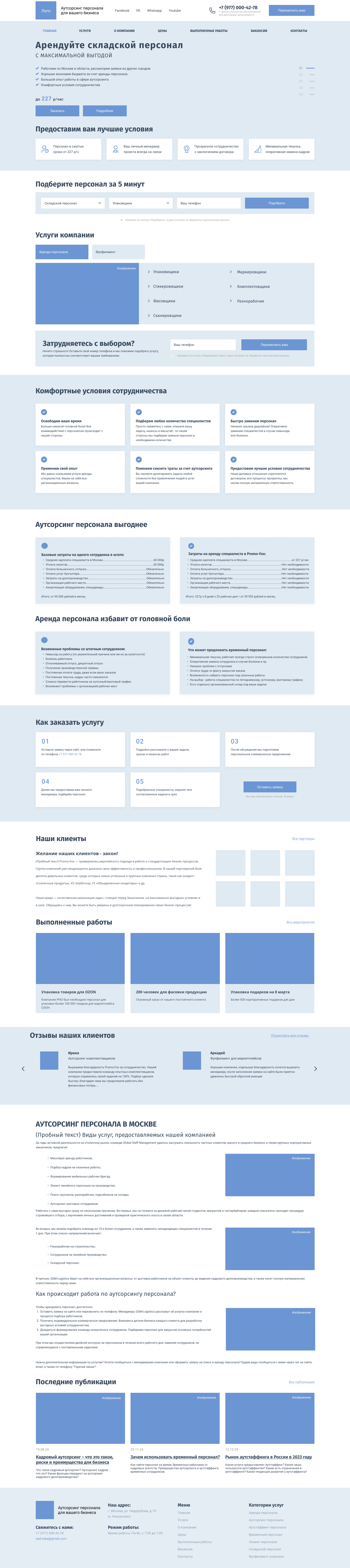 Компания, специализирующаяся на аутсорсинге персонала для бизнеса, уже имела репутацию надёжного исполнителя, но её сайт не отражал этого. Потенциальные клиенты — руководители и HR-специалисты — не находили на ресурсе чёткого ответа на главный вопрос: «Почему именно вы?»